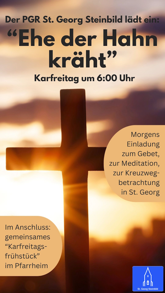 Der PGR St. Georg lädt ein: „Eh der Hahn kräht“, Karfreitag 6 Uhr März 30, 2026 (WS – 30.03.2026) Siehe Flyer!