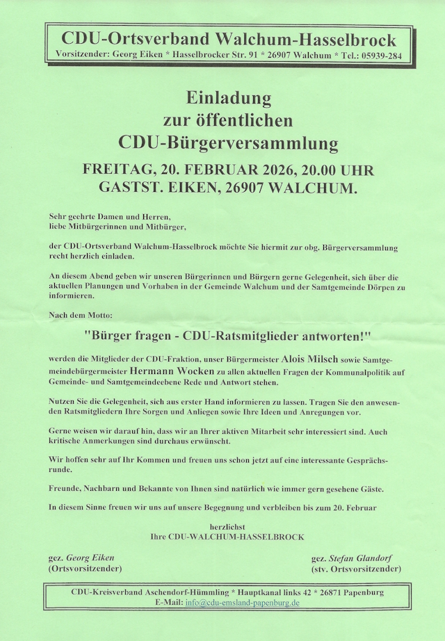 Einladung zur CDU-Bürgerversammlung am 20.2.26