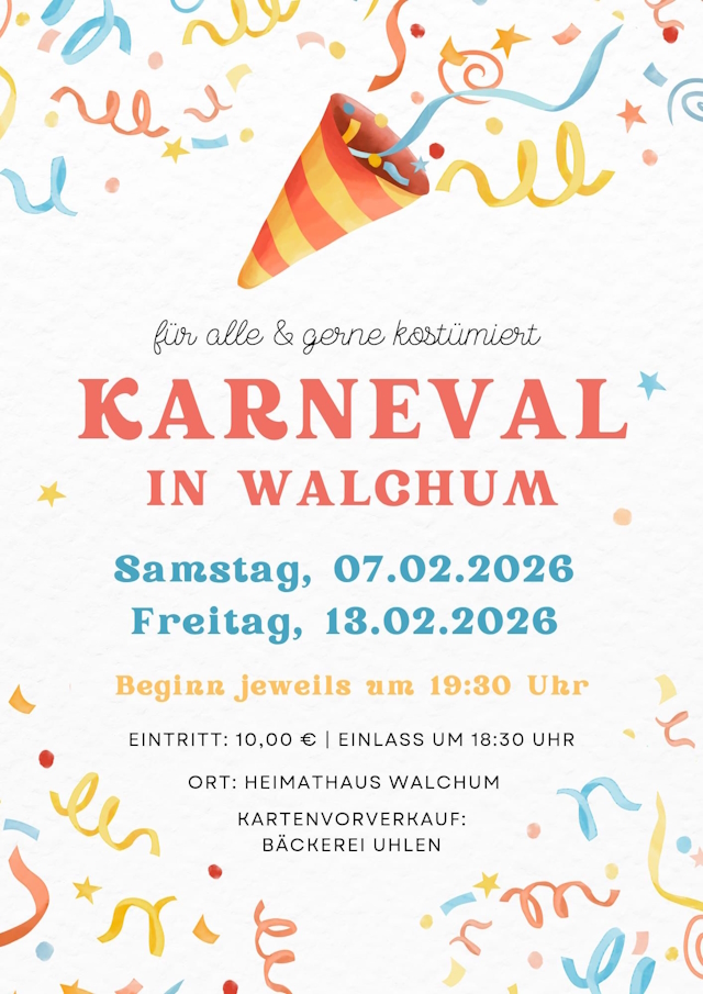• Karneval in Walchum am 07. und 13.02.2026