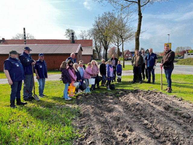 (WS – 17.04.2026) Wie haben eigentlich unsere Großeltern früher gearbeitet und wie wächst das Gemüse, das später auf unseren Tellern landet? Um diese Fragen praxisnah zu beantworten, lud der Oldtimerclub Walchum/Hasselbrock die zweite Klasse der Grundschule Walchum zu einer Kartoffelpflanzaktion ein. Auf dem Hof von Agatz Eiken begrüßte der 1. Vorsitzende des Clubs, Peter Diesterhöft, die Schüler und deren Klassenlehrerin sowie seine Oldtimerfreunde. Bevor es jedoch an die körperliche Arbeit ging, gab es eine kurze theoretische Einweisung. Der gelernte Landwirt Jürgen Terhorst erklärte den Kindern alles Wissenswerte rund um die Kartoffel und deren Anbau.