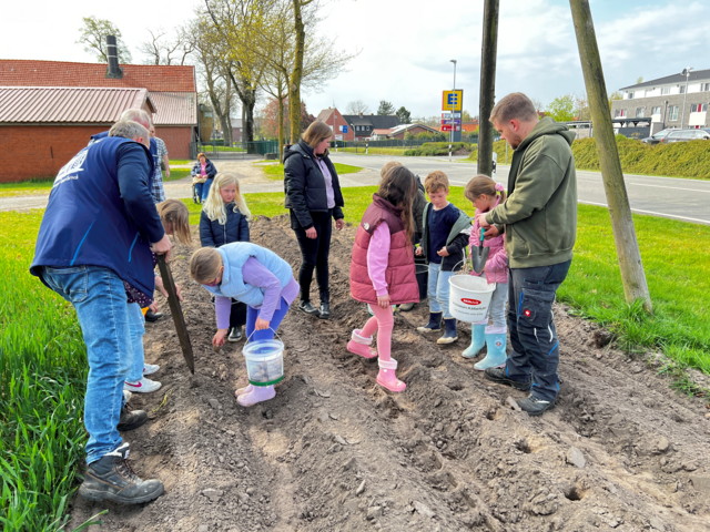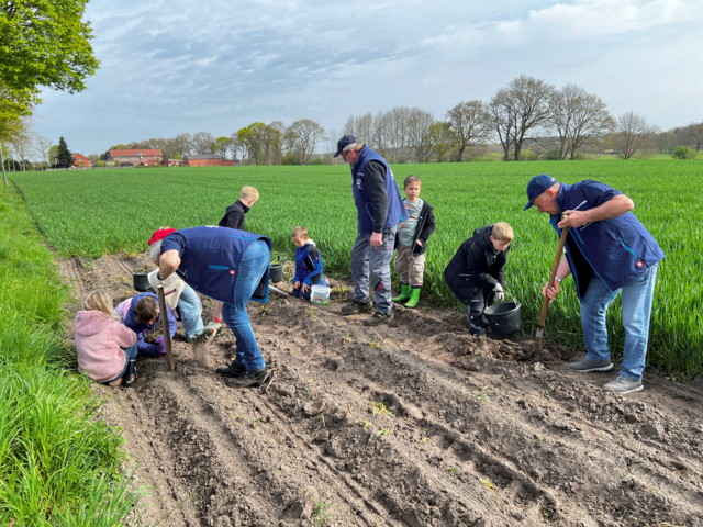 Für optimale Pflanzbedingungen hatte Landwirt Agatz Eiken bereits im Vorfeld gesorgt. Auf dem Nordesch, direkt neben seiner Hofstelle, hatte er vier Pflanzreihen von jeweils 30 Metern Länge fachgerecht vorbereitet.