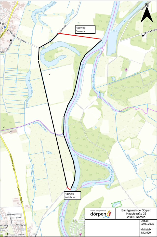 Die Gemeinden Dersum und Walchum planen in Kooperation die Erneuerung der derzeit unbefestigten Schotterwege zwischen der Marschstraße und dem Ems-Radweg, zu erneuern. Die Länge der zu erneuernde Zuwegung in Dersum beträgt dabei etwa 650 Meter, während in Walchum rund 58 Meter erneuert werden. Durch die enge Kooperation zwischen den beiden Gemeinden Dersum und Walchum konnte eine Förderquote von 60% erzielt werden.